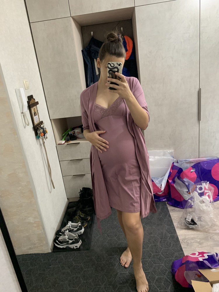 Ткань тонкая, просвечивается. Товар пришел в пакете от предыдущего покупателя-отказника. Все мятое. Как скомкали так и бросили. Пакет весь пыльный. Продаете для беременных, а все какое-то пыльное и грязное. Заводской упаковки не было.